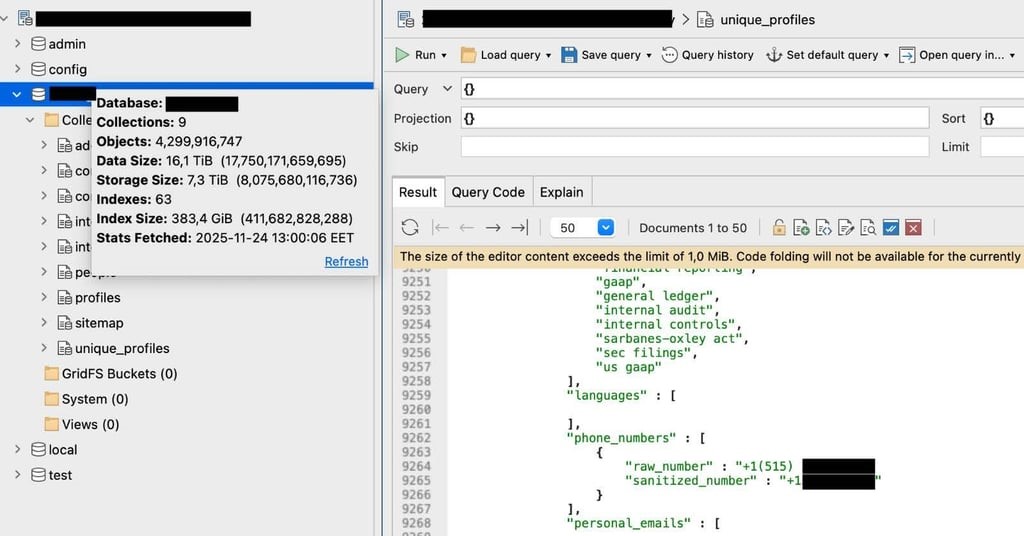 In a significant revelation that raises alarms for professionals regarding online privacy, cybersecurity researcher Bob Diachenko, in collaboration with nexos.ai, uncovered an unsecured MongoDB database on November 23, 2025. This massive dataset, consisting of approximately 16 terabytes (TB) of information, was left exposed on the internet, revealing an astonishing 4.3 billion professional records, which could be exploited by criminals for targeted attacks.